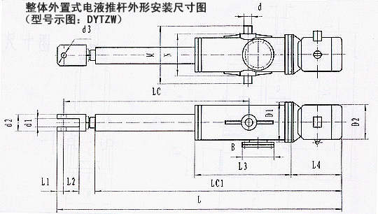 電液推桿是一種機(jī)、電、液一體化的新型柔性傳動(dòng)機(jī)構(gòu)、它以執(zhí)行機(jī)構(gòu)(油缸)、控機(jī)構(gòu)( 液壓控制閥組)和動(dòng)力源(油泵電機(jī)等)。根據(jù)現(xiàn)場安裝空間及用戶使用情況電液推桿可有多種 結(jié)構(gòu)形式(具體見電液推桿外形安裝尺寸圖,也可根據(jù)用戶要求定制樣式)。電動(dòng)機(jī)通過正反轉(zhuǎn) 驅(qū)動(dòng)雙向液壓泵正反輸出壓力油,經(jīng)液壓控制閥送至油缸,實(shí)現(xiàn)活塞桿的往復(fù)運(yùn)動(dòng)。